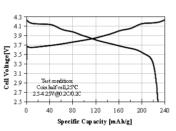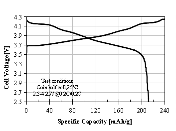 S-3360 Product Application: Used for pouch or prismatic batteries, 0.33C discharge capacity as 142.2 mAh/g at 4.10V, cycle performance: 80% capacity retention after 750 cycles at 1C/1C (4.05V), used for electric cars.