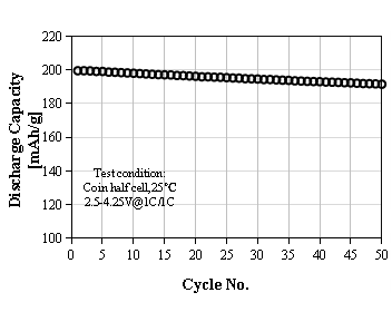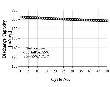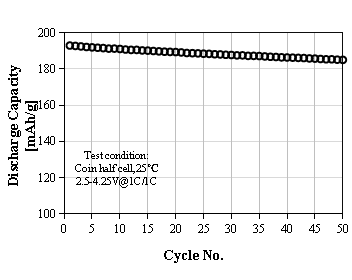 L-8300 Product Application: Used for prismatic or pouch batteries, 0.33C discharge capacity as 198 mAh/g at 4.25V, cycle performance: 80% capacity retention after 2000 cycles at 1C/1C, used for electric cars.