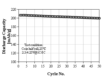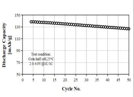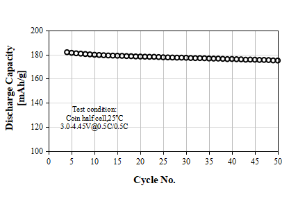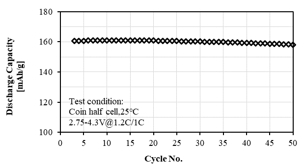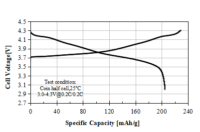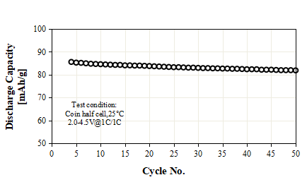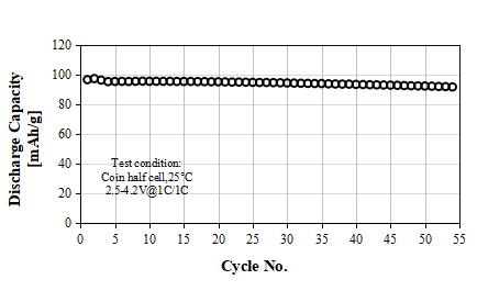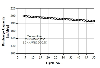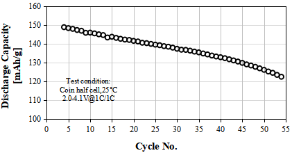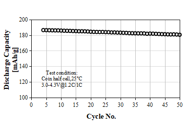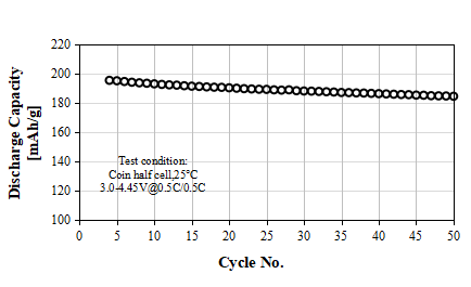 S-3300A Product Application: Used for pouch or prismatic batteries, in coin-cell test, 0.1C discharge capacity as 138 mAh/g at 4.00V, cycle performance: 90% capacity retention after 50 cycles at 1C/1C, used for small energy storage or low speed electric vehicles.