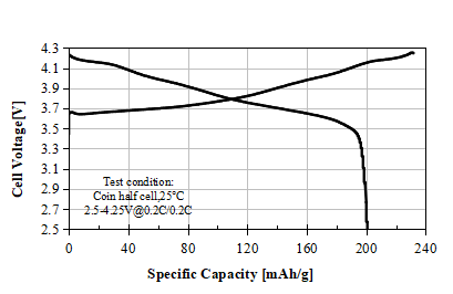 L-9250 Product Application: Used for cylindrical or pouch batteries, 0.2C discharge capacity as 215.6 mAh/g at 4.20V, cycle performance: 80% capacity retention after 1000 cycles at 1C/1C, used for electric cars.
