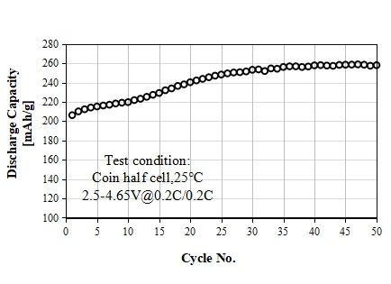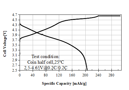 LRM35M Type Lithium-rich Manganese-based cathode (Ni/Mn=35/65, 4.65V, used for prismatic or pouch batteries)